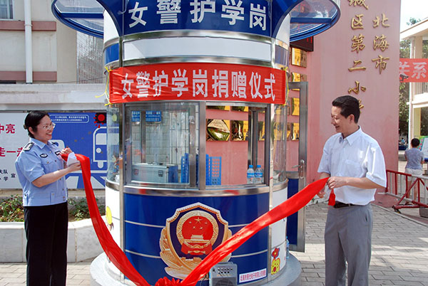 近日,市公安局交警支隊(duì)女警護(hù)衛(wèi)崗捐贈(zèng)儀式在海城區(qū)二小門(mén)前舉行。北海景光電子有限公司向交警支隊(duì)捐贈(zèng)了兩個(gè)女警護(hù)衛(wèi)崗?fù)?,價(jià)值達(dá)4.6萬(wàn)元,用實(shí)際行動(dòng)支持百萬(wàn)學(xué)生文明交通暨“護(hù)衛(wèi)天使行動(dòng)”創(chuàng)建工作。據(jù)了解,目前全市共有三個(gè)護(hù)學(xué)崗,其中女警護(hù)學(xué)崗兩個(gè),在每天學(xué)生上學(xué)放學(xué)的高峰期,在校門(mén)口路段指揮疏導(dǎo)交通,引導(dǎo)護(hù)送學(xué)生安全有序地橫過(guò)道路,確保校園周邊道路交通秩序井然。