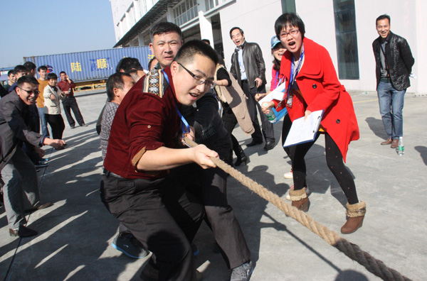 下午,一場別開生面的拔河比賽將活動推向小高潮。拔河比賽以促進企業(yè)交流為宗旨,豐富職工體育活動為目的,為企業(yè)搭建展現(xiàn)集體風采的舞臺,從而發(fā)揚團隊精神,增強凝聚力。此次比賽園區(qū)企業(yè)積極響應,共有11個企業(yè)組隊參加,特別是有些企業(yè)為了參賽,臨時停工,比賽結束后回單位繼續(xù)生產,體現(xiàn)了園區(qū)大家庭的凝聚力。每支參賽隊伍共15人,其中男生10人,女生5人,實行淘汰制晉級方式。當比賽哨聲響起,各參賽隊員們口中一起高呼“一二,一二”,雙手緊握長繩,憋足勁拼命往后拉,拉拉隊在旁助陣加油,恨不得抓起繩子跟隊員們一起努力,各種加油聲、吶喊聲此起彼伏,回響至整個園區(qū)。經過激烈較量,最終冠捷科技獲得冠軍,瑞達物業(yè)獲得亞軍。